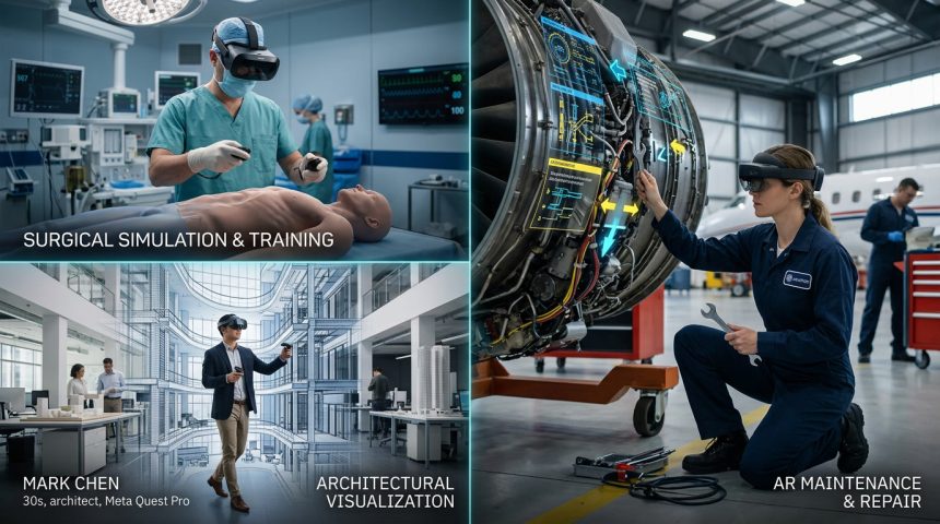 • Industri Kesehatan: VR telah terbukti secara signifikan mengurangi risiko malpraktik medis dengan memungkinkan ahli bedah spesialis menjalankan simulasi operasi kompleks sebelum merawat pasien nyata.